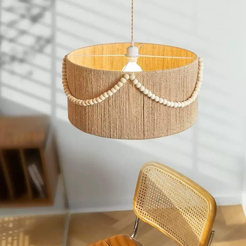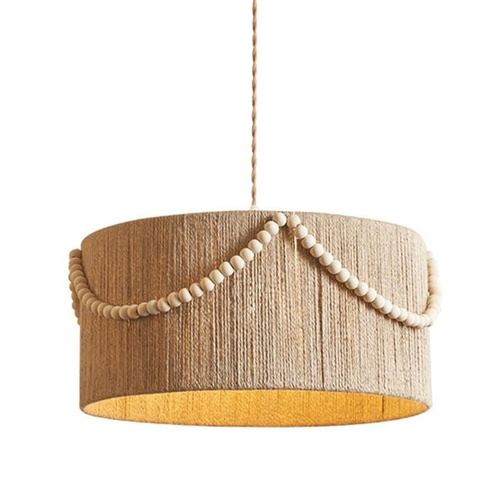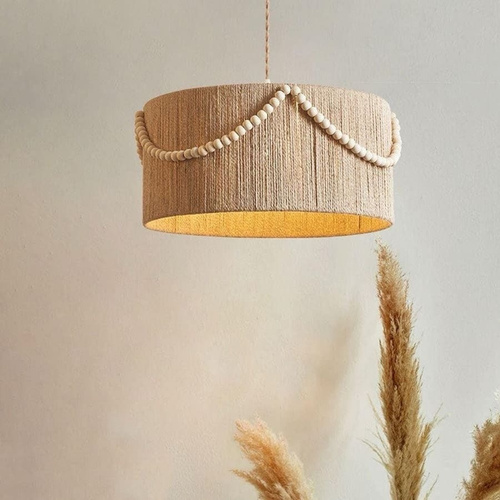 لوستر گرد بوهو با مهره های مرواریدی مکرومه رافیا آویز اتاق خواب کافه و رستوران
