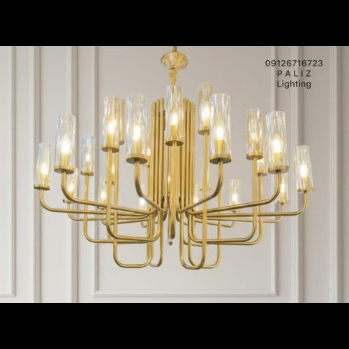 لوستر مدرن لومینا لهستانی فلزی اسپرت طلایی زیتونی با شاخه پروفیل فلزی کد O-105